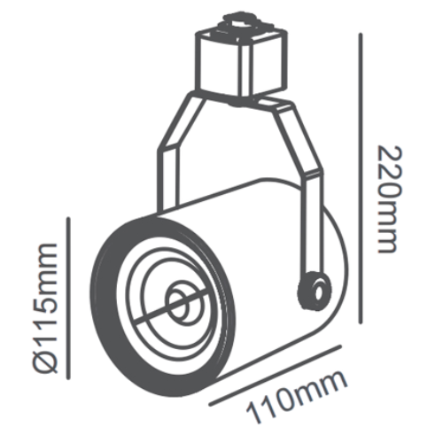 Dimensões: Ø115 x 220 x 110mm